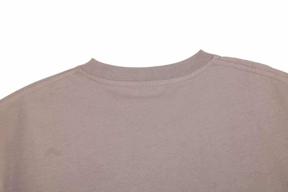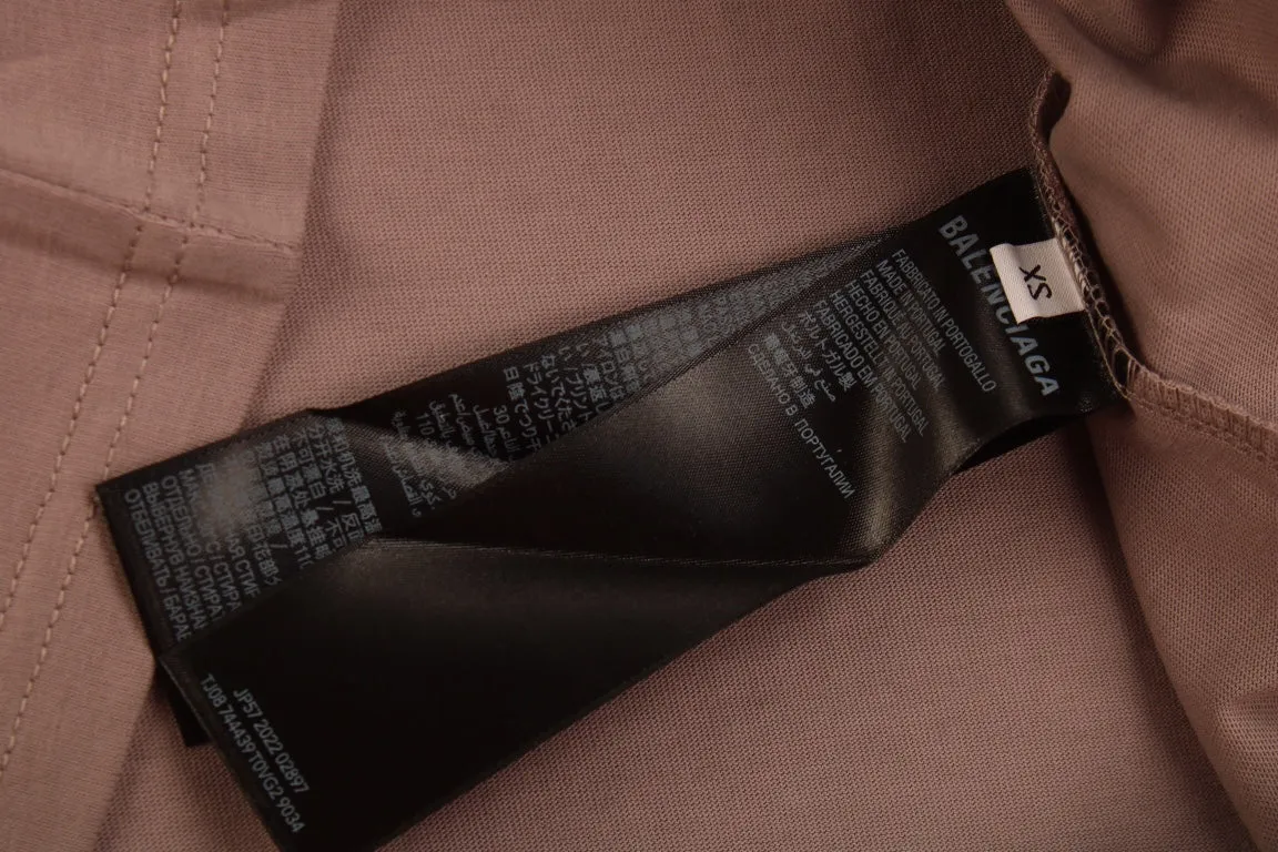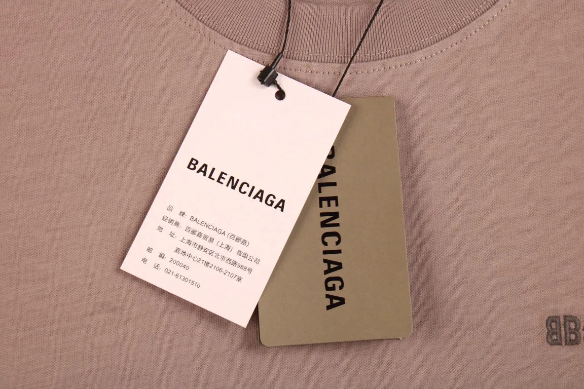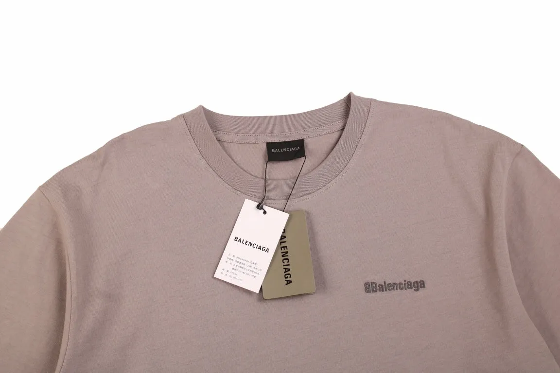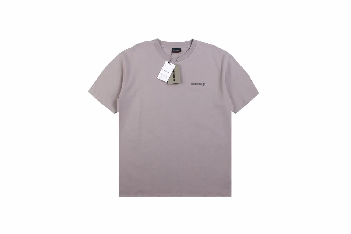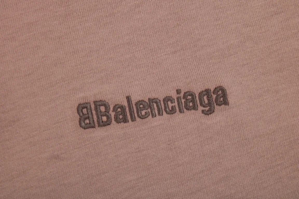 A simple yet elegant Balenciaga t-shirt. Light brown color with a small "Balenciaga" text on the chest. Classic crew neck and short sleeves. Ideal for a clean, understated look.