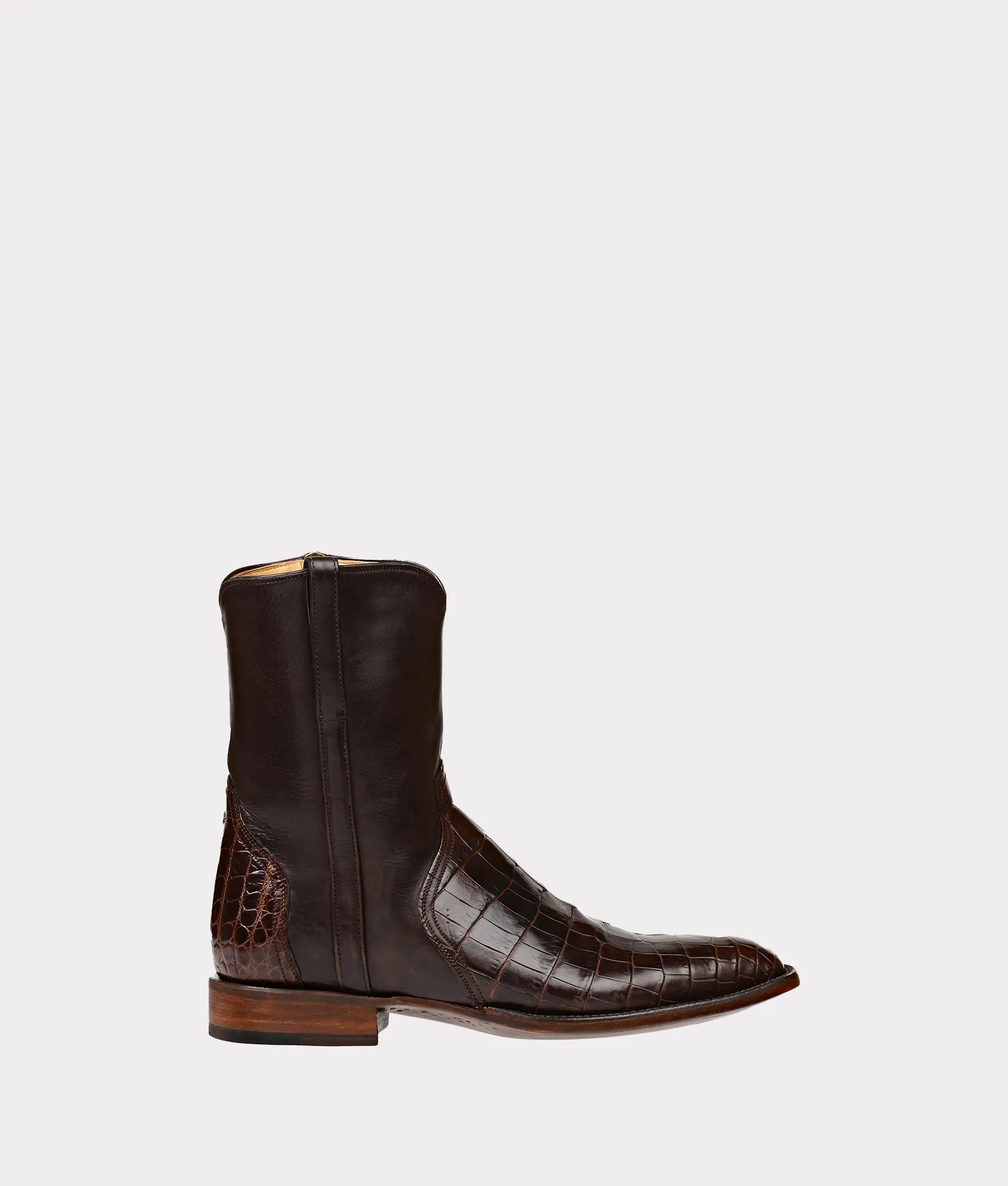 Elliot is an exotic Pony Matador handcrafted from the richest Nile Crocodile leather. A silhouette fashioned for a squire, this handsome dress boot makes a statement amongst the crowds. A side-zip and Torero side seam stitch give the eye a roadmap to the rest of your repertoire. Black tie ready. Cocktail ready. Handmade in Texas.