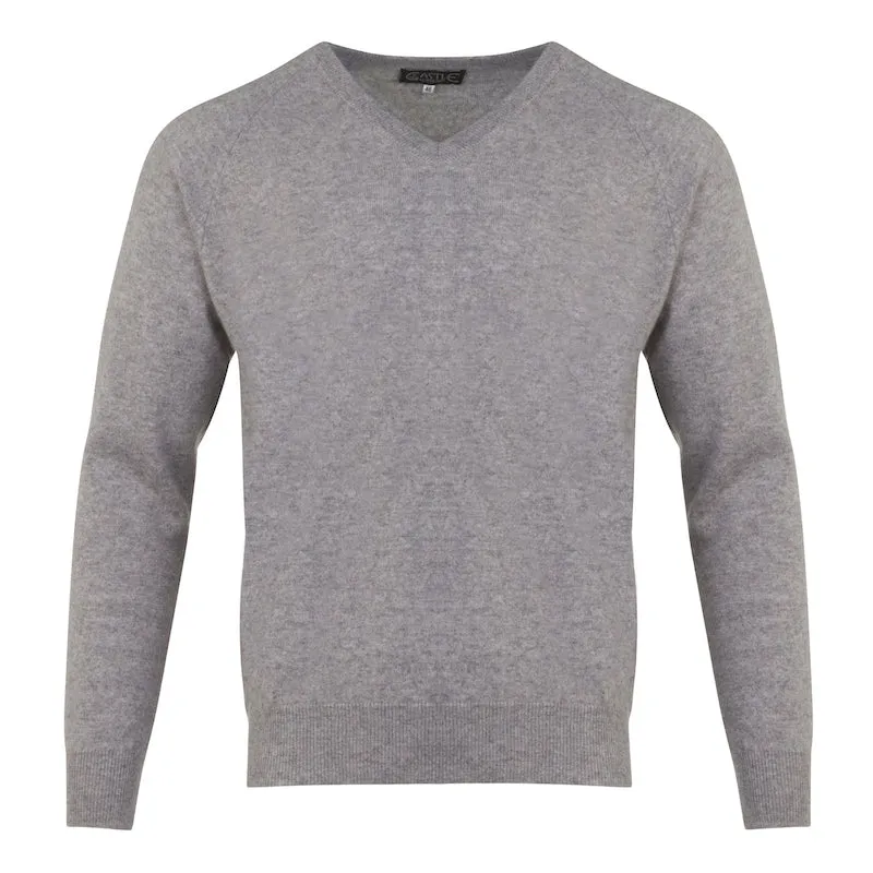 Men's Cashmere V-Neck Sweater in Silver Grey