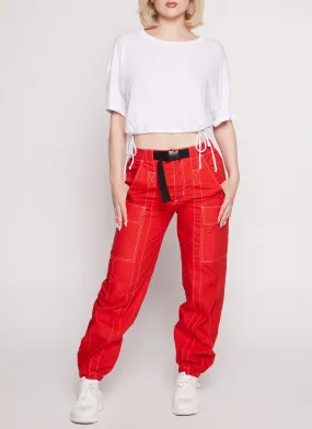 - Adjustable tie-back waist for a custom fit